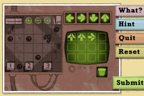 So the overall gameplay is a disappointment, but most people are going to be concerned with the quality of the puzzles themselves. How do they work? Sadly, these are largely bad as well. While the game as a whole was designed to avoid challenging the player, the puzzles just seem designed to avoid challenging the writer. The main difficulty lies not in solving them, but in interpreting the instructions correctly. The early puzzles are so simple that I stared at them for a long time trying to find the twist before I finally realized there was none. Later puzzles become slightly more challenging for the most part, but the main challenge still lies in figuring out whether the puzzle is worth second-guessing or not.