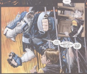 Chris Samnee provides excellent art. I had not known of him beforehand, but between this title and the recently released Serenity: The Shepherd’s Tale, I’ll be keeping my eye on him. His work is soft and understated, with simple lines calling out emotions, and incredibly natural body language. Every character looks distinct and natural. While that may sound out of place in an action-heavy genre, where artists usually focus on adventure at the expense of portraying the people, Samnee makes it work: When every pose conveys Thor’s quiet, confident strength, the powerful action flows naturally.